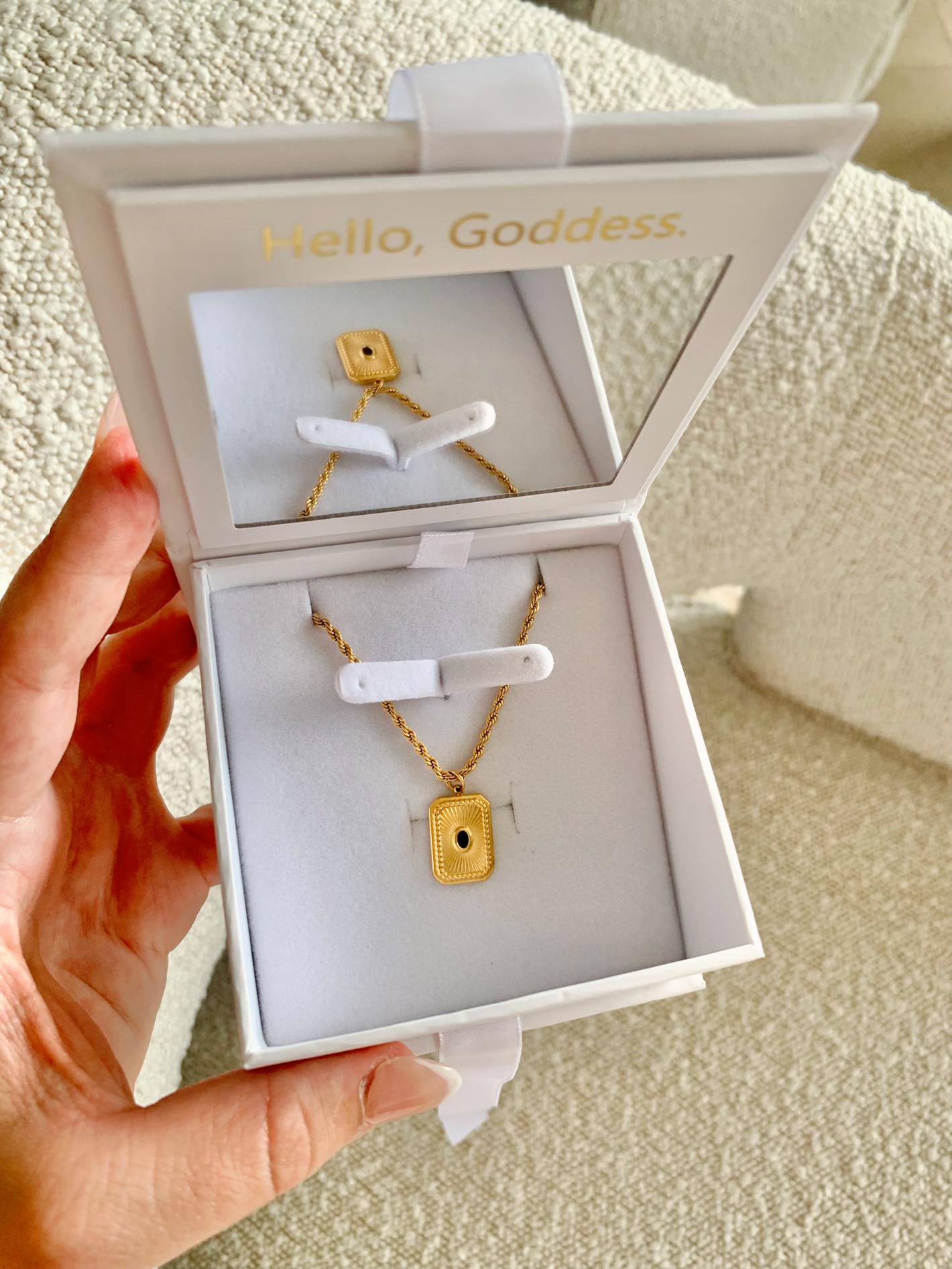 All of our orders come in our beautifully designed packaging making it the perfect gift for someone special or to treat your gorgeous self! Not to mention our packaging is environmentally friendly and fully recyclable. Open up inside and indulge in our hand picked high quality pieces.